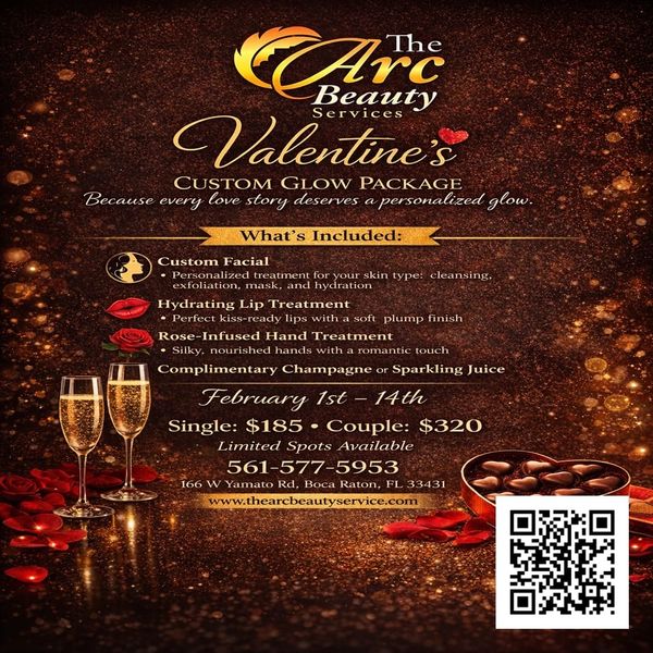 Custom Facial - Hydrating Lip Treatment - Rose Infused Hand Treatment - Complimentary Champagne or Sparkling Juice. From Feb 1st to 14th. (Reservation is required)